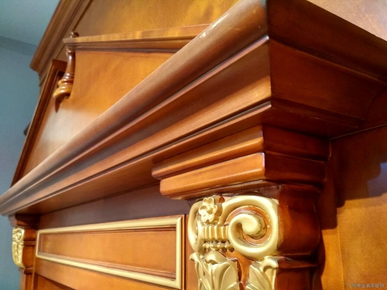 實木中間添加了四根羅馬柱,精心手工雕刻花紋,極大的增加美感。